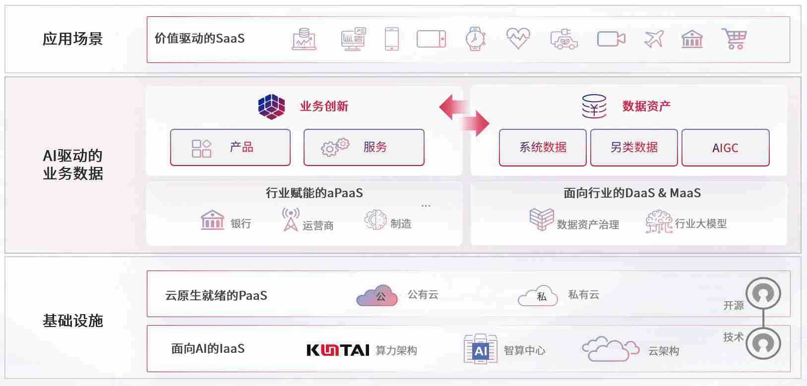 数字时代,,,,围绕企业数字化转型的关键要素,,ok钱包数码开创性的提出数云融合战略和技术体系框架,,着力在云原生、、、、数字原生、、、AI原生和信创产业上架构产品和服务能力,,为处在不同数字化转型阶段的快消零售、、、、汽车、、、、金融、、、医疗、、、、政企、、教育、、、运营商等行业客户提供泛在的敏捷IT能力和融合的数据驱动能力,,,,构建跨界融合创新的数字业务场景和新业务模式,,助力企业级客户建立面向未来的核心能力和竞争优势,,,全面推动社会的数字化、、智能化转型升级。。。。